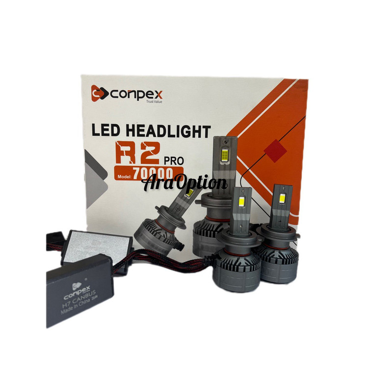 برند کانپکس Conpex یکی از شرکتهای معروف در زمینه تولید انواع لامپهای LED و هدلایت خودرو در کشور چین می باشد. هدلایت R2 Pro کانپکس نیز از مدلهای بادوام، با کیفیت این شرکت معروف می باشد که از چیپ LED CSP تکنولوژی مونتاژی در دو طرف بدنه لامپ استفاده میکند. این هدلایت اقتصادی دارای 45 وات توان مصرفی در هر عدد از لامپ هدلایتها خود می باشد. این مدل در پایه H۷، پایه H۱، پایه H۴ و سایر پایههای هدلایت برای بیشتر ماشینهای ایرانی و خارجی مورد استفاده قرار میگیرد.