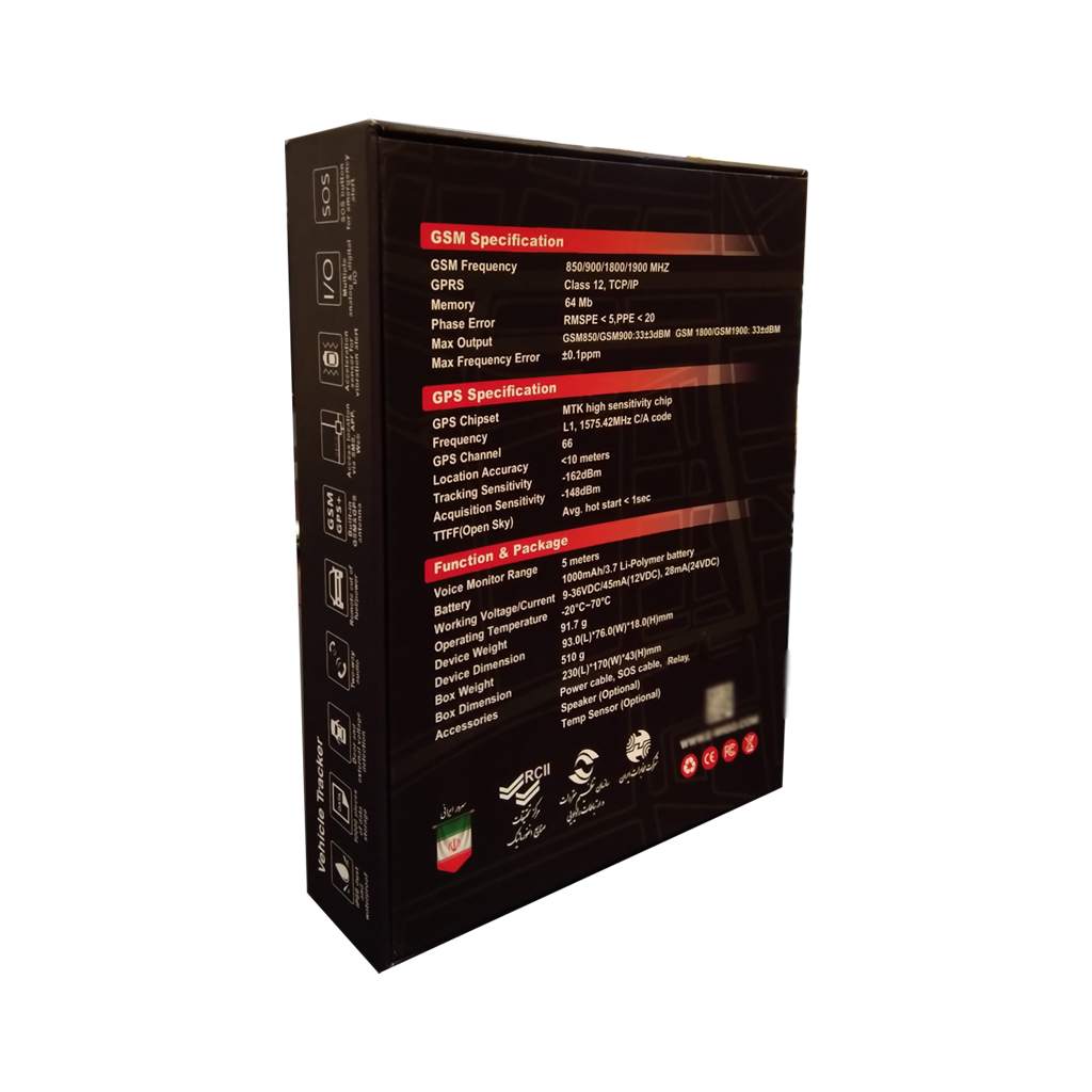 - باتری داخلی ۱۰۰۰ میلیآمپر → تا ۱۰۰ ساعت ارسال موقعیت حتی پس از قطع برق