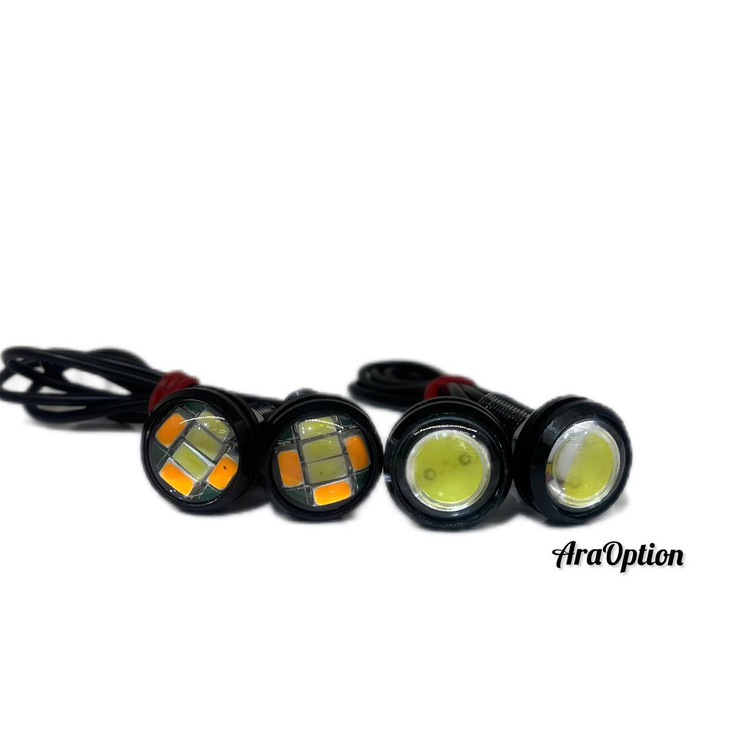 این محصول یک مدل دیلایت کوچک لنزدار می باشد که می توان آن را در قسمت های مختلف خودرو بصورت سلیقه ای نصب کرد. ایگل آیس دو حالته یا چراغ ال ای دی راهنما دار زیر آینه بغل (ایگل لایز) علاوه بر زیبایی می تواند در مکان هایی که به صورت مطلق تاریک است کمک زیادی به دید بهتر راننده کند، همچنین به چراغ LED زیر آینه بغل خودرو ولکام لایت هم گفته می شود، این چراغ داخل آینه جانبی و در قسمت پایینی آن نصب می گردد. برق آن از سیم های داخل در گرفته شده و می توان برای آن کلید روشن خاموش جداگانه نصب کرد. یکی دیگر از روش های نصب چراغ ال ای دی داخل آینه، متصل کردن آن به ریموت در خودرو می باشد که در این صورت با قفل کردن خاموش و با باز کردن در، ال ای دی روشن می شود.